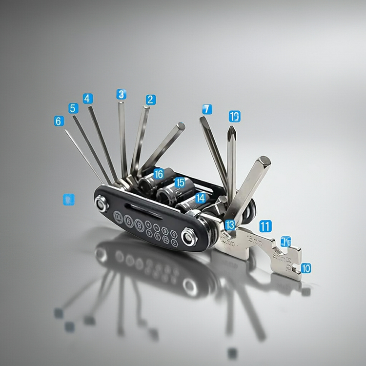 - VERSATILE DESIGN: 16-in-1 multitool featuring essential bicycle repair tools, perfect for cycling maintenance, camping, and everyday repairs
