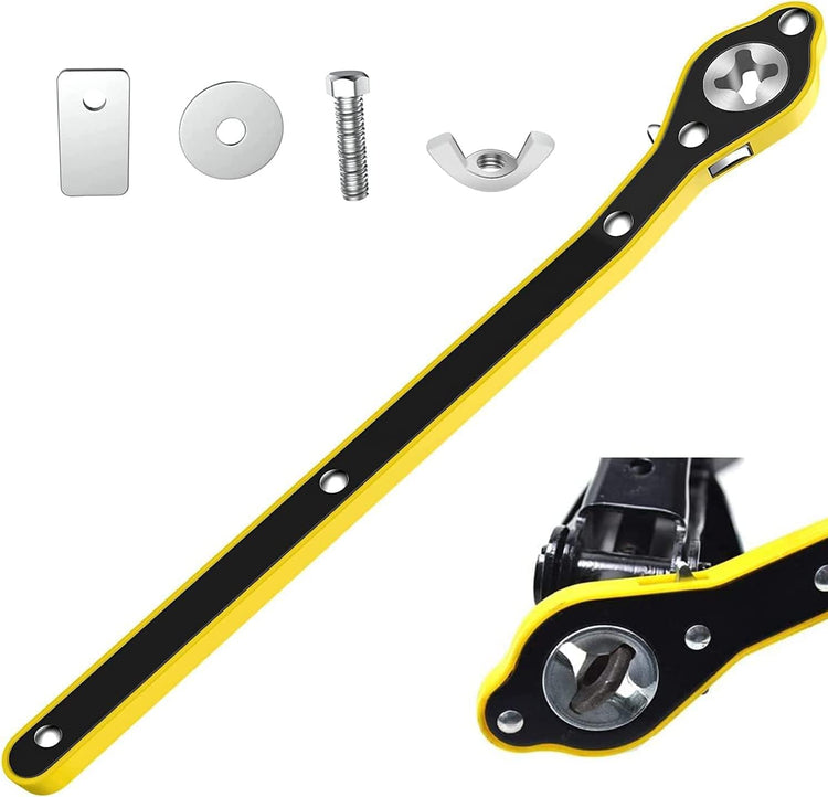 Elevate your vehicle maintenance experience with this robust 34cm car jack wrench. Crafted from thickened steel with heat treatment, this labour-saving ratchet handle tool combines durability with efficiency. The 0.24-inch thick handle features a distinctive black and yellow design with a tightly connected plastic grip for secure operation. Its high-torque mechanism and rust-resistant construction ensure reliable performance, while the 0.98-inch diameter head provides excellent compatibility with various scissor jacks. Perfect for small cars, SUVs, and vans, this versatile wrench makes tyre changes and maintenance tasks significantly easier. The ergonomic design incorporates multiple reinforcement points along the shaft for enhanced stability during use. Included mounting hardware ensures proper installation, making this tool an essential addition to your vehicle maintenance kit. The wrench's professional-grade construction delivers consistent performance in demanding situations, making it a reliable companion for both emergency situations and routine maintenance.